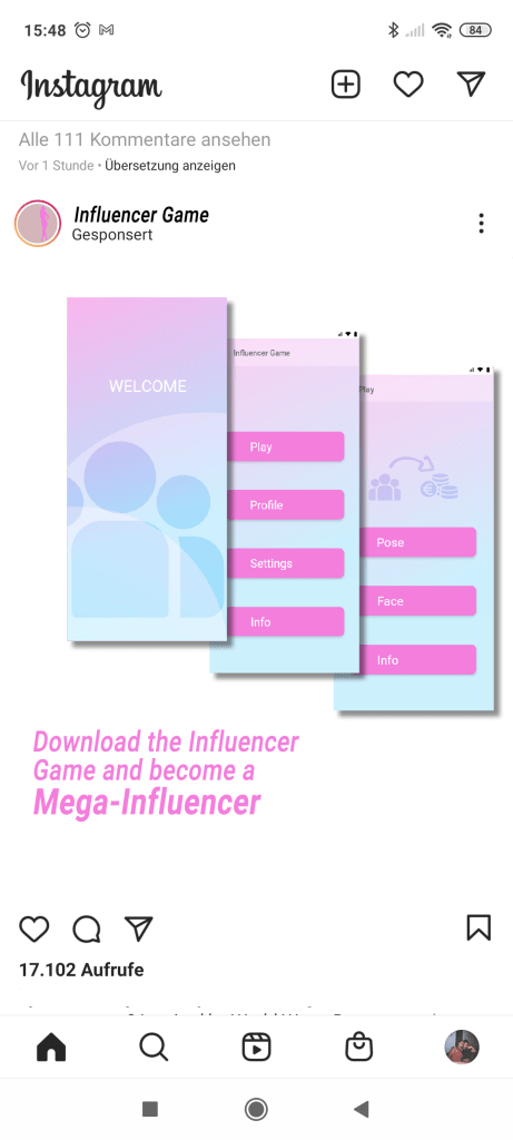 We assume that the young people are Instagram and therefore also smartphone savvy. That is why we created a smartphone game. In this way, we want to make the world of influencers tangible for young people and at the same time encourage them to question the self-portrayal of influencers.
